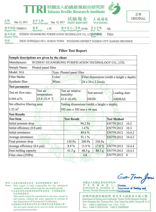 G4初效过滤器检测报告